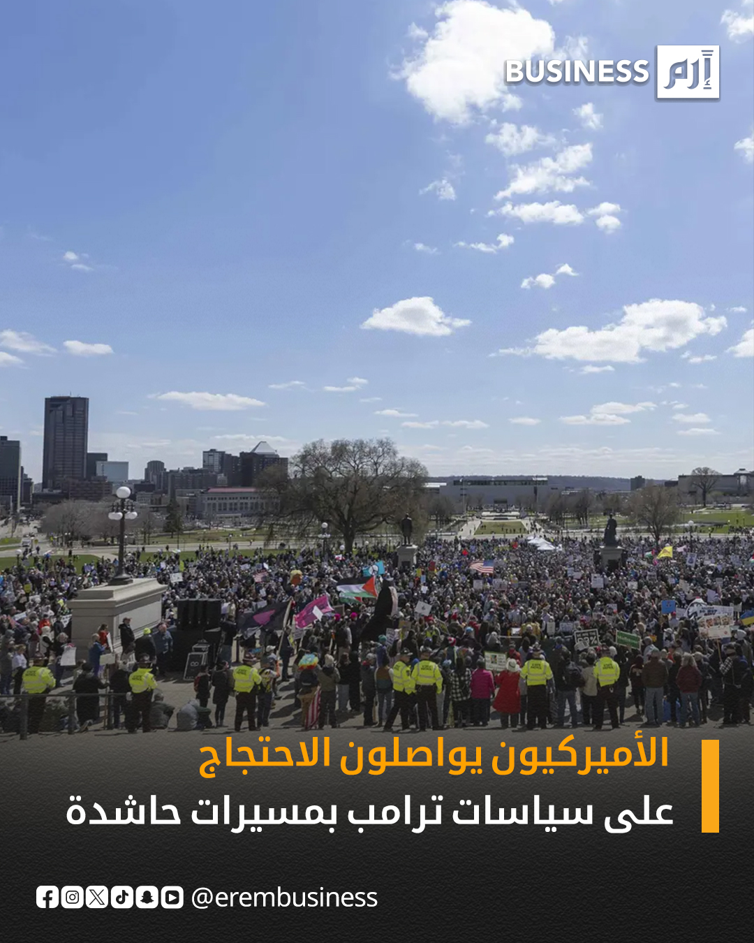 نظم آلاف المحتجين مسيرات في واشنطن ومدن أخرى في أنحاء الولايات المتحدة أمس السبت اعتراضاً على سياسات الرئيس دونالد ترامب المتعلقة بترحيل المهاجرين وطرد موظفي الحكومة والحرب في غزة وأوكرانيا.