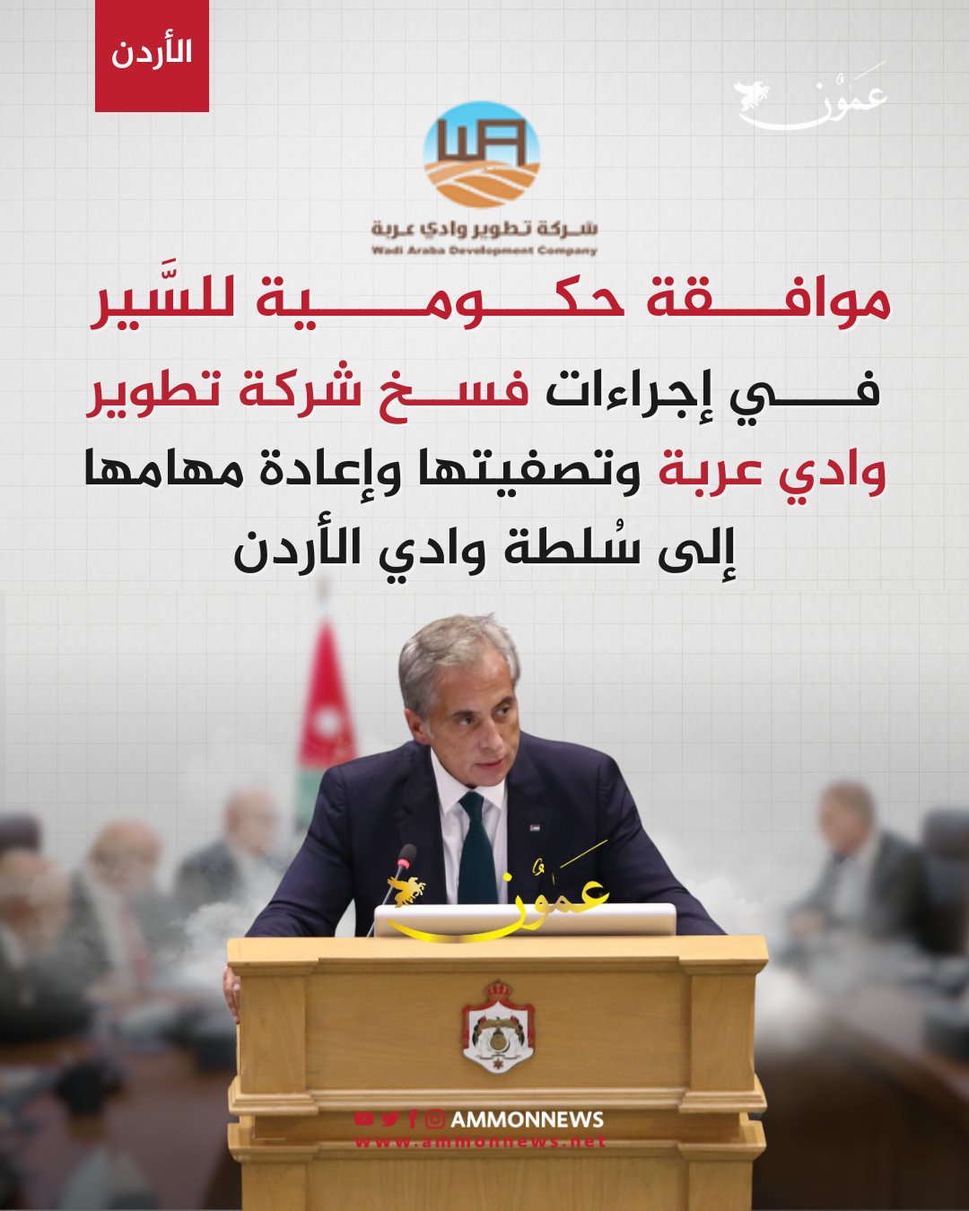عمون - قرّر مجلس الوزراء تكليف وزارة المياه والرَّي بالسَّير في إجراءات فسخ شركة تطوير وادي عربة وتصفيتها، وإعادة مهامها وغاياتها إلى سُلطة وادي الأردن.