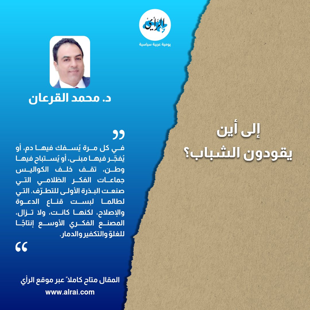 د. محمد كامل القرعان في كل مرة يُسفك فيها دم، أو يُفجّر فيها مبنى، أو يُستباح فيها وطن، تقف خلف الكواليس جماعات الفكر الظلامي التي صنعت البذرة الأولى للتطرّف. التي لطالما لبست قناع الدعوة والإصلاح، لكنها كانت، ولا تزال، المصنع الفكري الأوسع إنتاجًا للغلوّ والتكفير والدمار.
