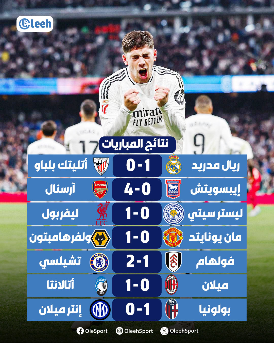 ختام ولا أروع لسهرتنا الكروية في الأحد الممتاز. إثارة، أهداف، مفاجآت. إليكم أبرز نتائج مباريات اليوم في الدوريات الكبرى