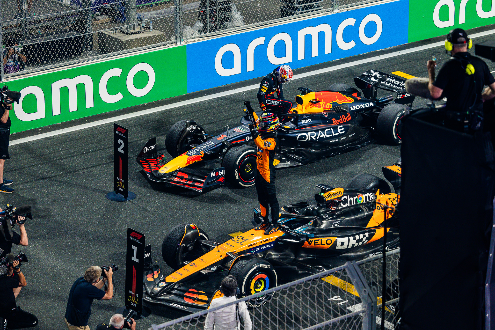 وتوّج سمو وزير الرياضة في نهاية السباق، الفائز بالمركز الأول الأسترالي "أوسكار بياستري" سائق فريق ماكلارين، فيما توّج سمو الأمير خالد بن سلطان بن عبدالله بن فيصل، الفائز بالمركز الثاني المتسابق الهولندي "ماكس فيرستابن"، سائق فريق ريد بُل.