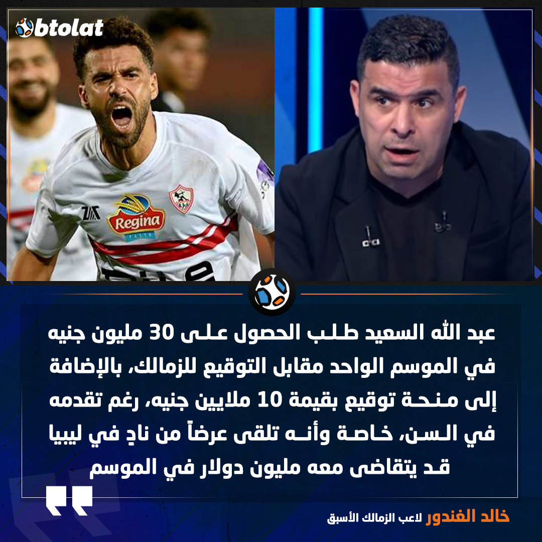 خالد الغندور: عبد الله السعيد طلب الحصول على 30 مليون جنيه في الموسم الواحد مقابل التوقيع للزمالك، بالإضافة إلى منحة توقيع بقيمة 10 ملايين جنيه، رغم تقدمه في السن