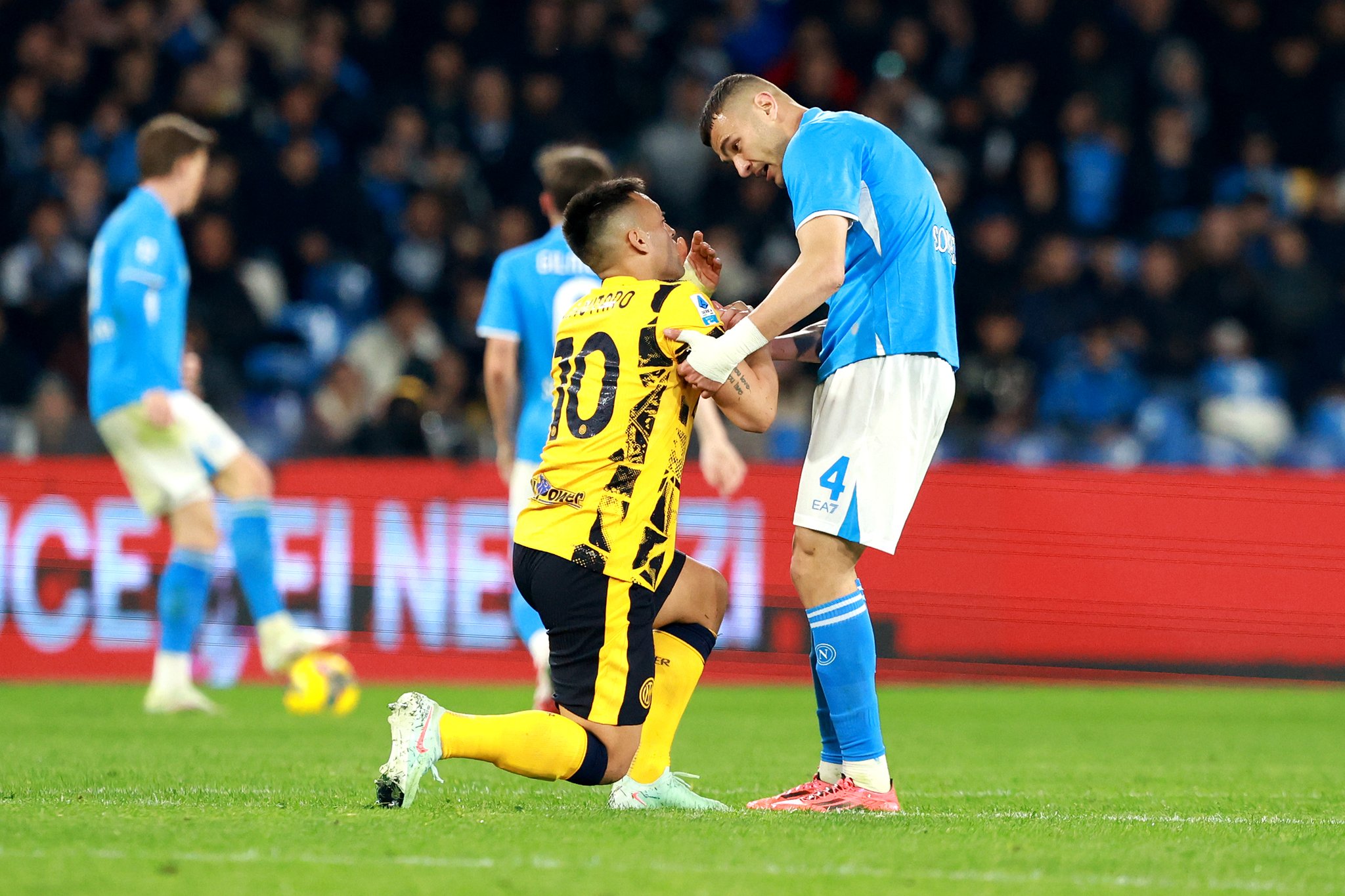1- إنتر 71 نقطة 2- نابولي 71 نقطة. 5 جولات على النهاية. المباريات المتبقية للإنتر... روما. فيرونا. تورينو. لاتسيو. كومو. المباريات المتبقية لنابولي. تورينو. ليتشي. جنوى. بارما. كالياري. في حال التساوي يتم اللجوء لمباراة فاصلة. من هو بطل الكالتشيو هذا الموسم في رأيك؟