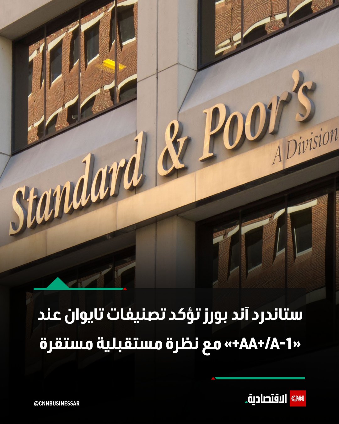 ستاندرد آند بورز تؤكد تصنيفات تايوان عند «AA+/A-1+» مع نظرة مستقبلية مستقرة. أكدت وكالة «ستاندرد آند بورز» تصنيفاتها الائتمانية لتايوان عند «AA+/A-1+»، مع الإبقاء على النظرة المستقبلية «مستقرة». #العالم_بلغة_الأعمال