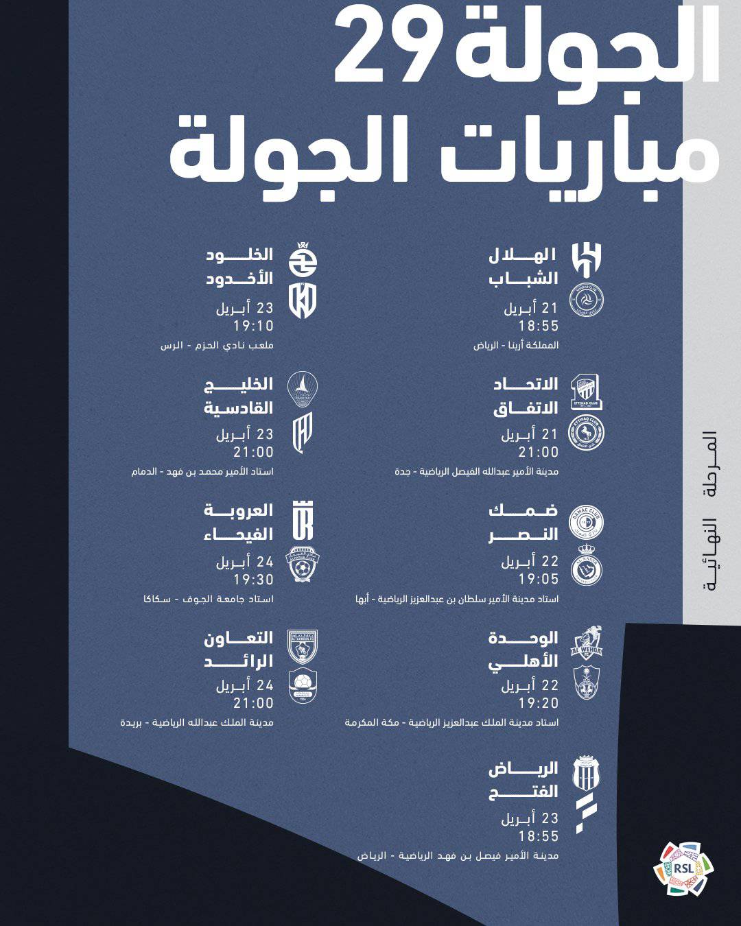 يشهد الدوري السعودي للمحترفين إقامة مباراتين مفصليتين عندما يستقبل الهلال ضيفه الشباب، ويستضيف الاتحاد نظيره الاتفاق، في مشهد قد يرسم ملامح الصدارة أو يعيد ترتيبها حساباتها من جديد.