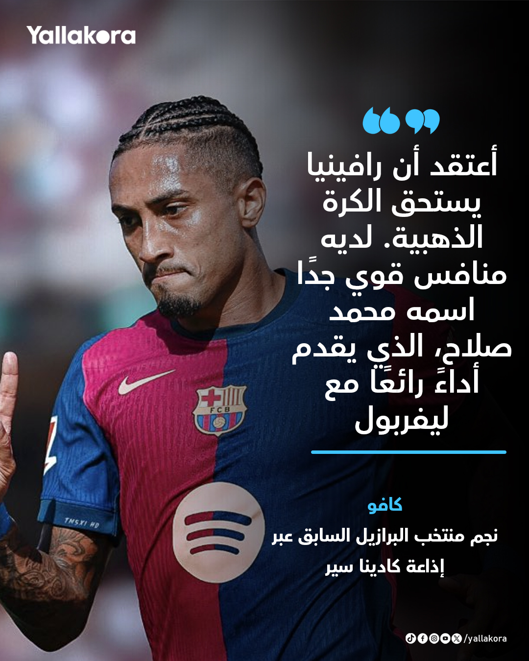 كافو نجم منتخب البرازيل السابق عبر إذاعة كادينا سير: أعتقد أن رافينيا يستحق الكرة الذهبية. لديه منافس قوي جدًا اسمه محمد صلاح، الذي يقدم أداءً رائعًا مع ليفربول. بالنسبة للأرقام التي يملكها، بالنسبة للأرقام القياسية التي يحطمها في برشلونة، بالنسبة لكل ما يفعله في برشلونة، أعتقد أن الأرقام هذا العام تقول إن رافينيا يستحق الكرة الذهبية