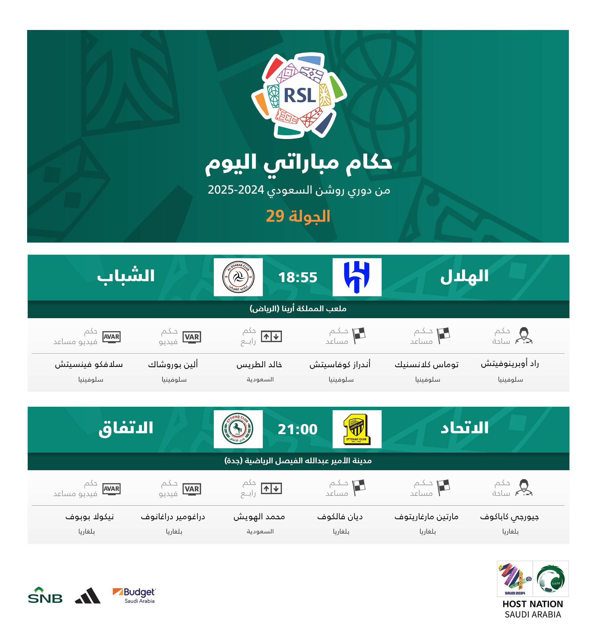 حكام مباراتي اليوم ضمن الجولة ال29 من #دوري_روشن_السعودي