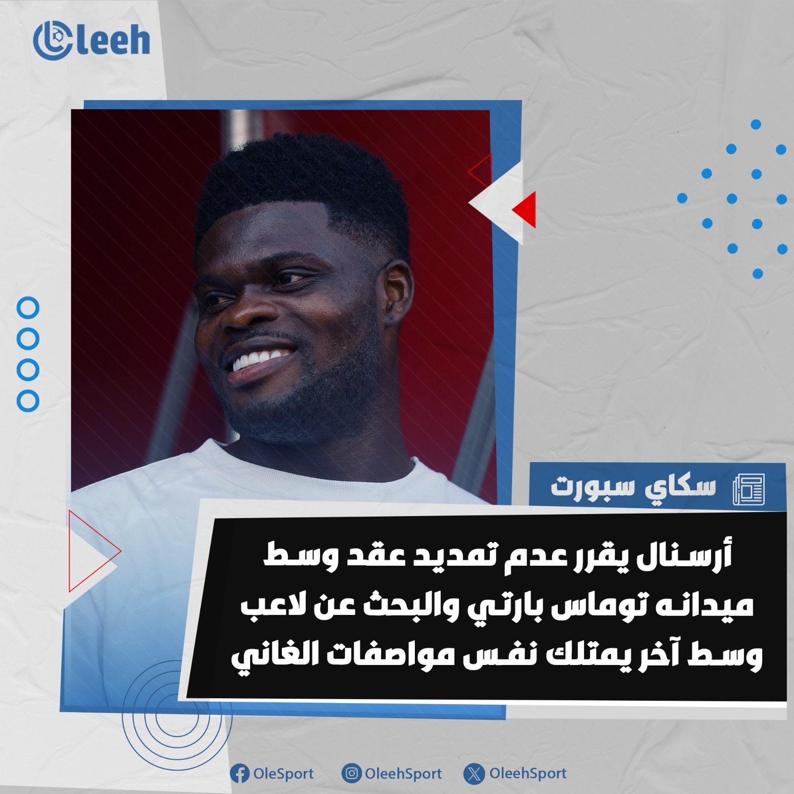 سكاي سبورت | أرسنال يقرر عدم تمديد عقد توماس بارتي والبحث عن لاعب وسط آخر بنفس المواصفات.. الغاني يعيش أيامه الأخيرة مع الجانرز حيث ينتهي تعاقده في يونيو المُقبل