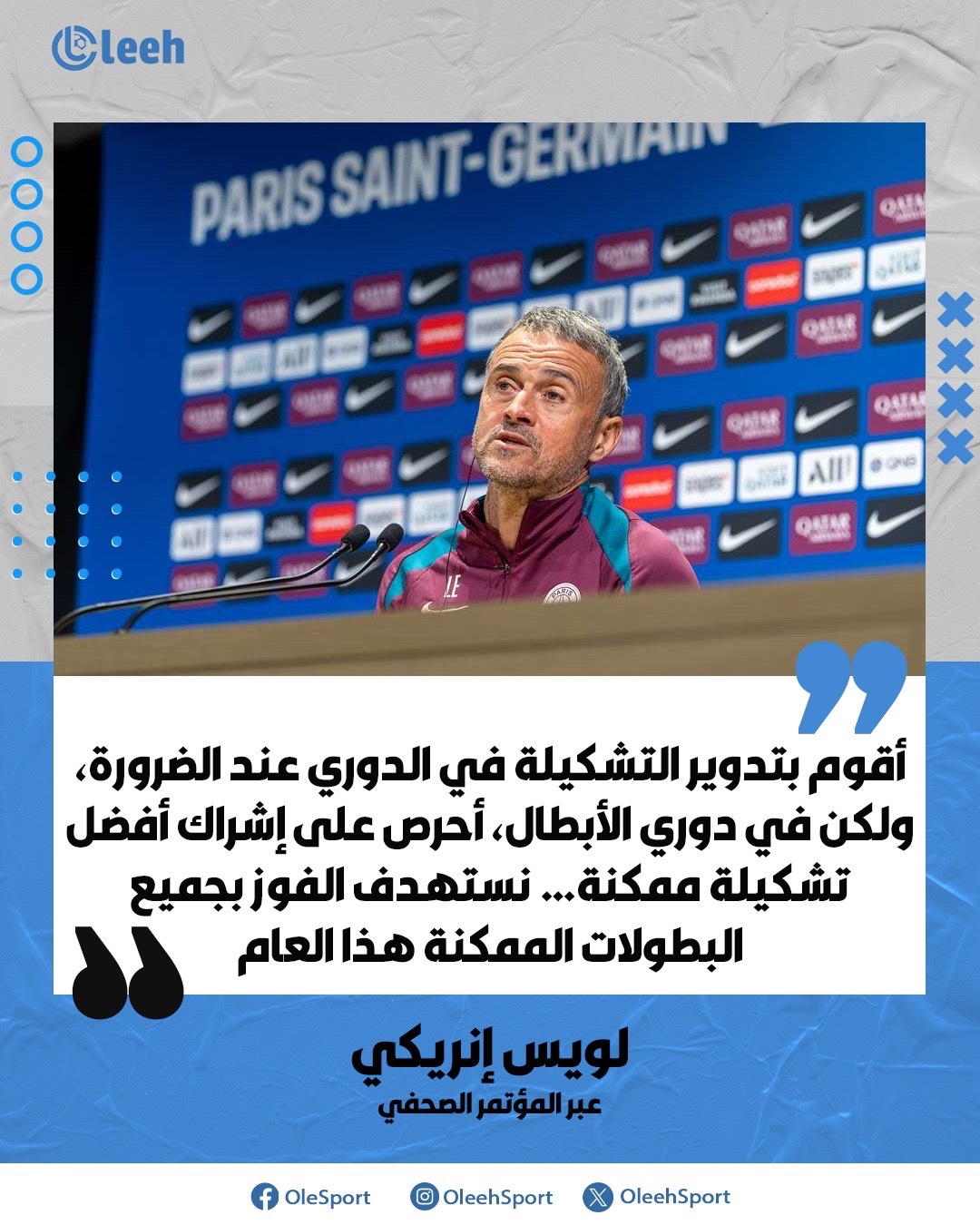 لويس إنريكي: "أقوم بتدوير التشكيلة عند الضرورة، ولكن بمجرد انطلاق دوري أبطال أوروبا، أحرص على إشراك أفضل تشكيلة ممكنة نستهدف الفوز بجميع البطولات الممكنة هذا العام"
