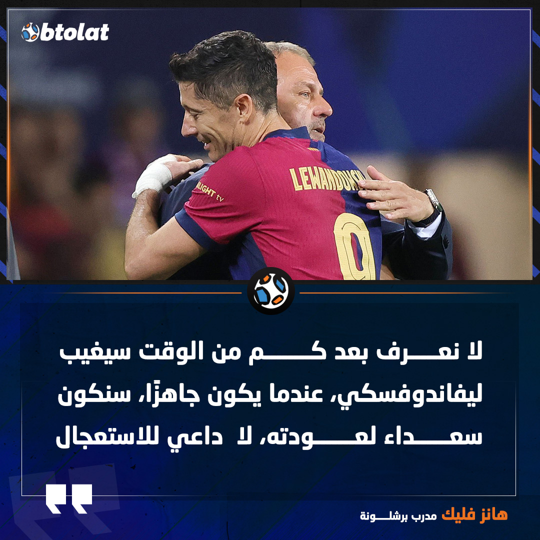 هانز فليك عن ليفاندوفسكي: لا نعرف بعد كم من الوقت سيغيب، عندما يكون جاهزًا، سنكون سعداء لعودته، لا داعي للاستعجال