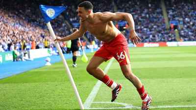 واحتفل ألكسندر-أرنولد بالهدف بحماس أمام مشجعي ليفربول، وخلع قميصه ابتهاجًا.