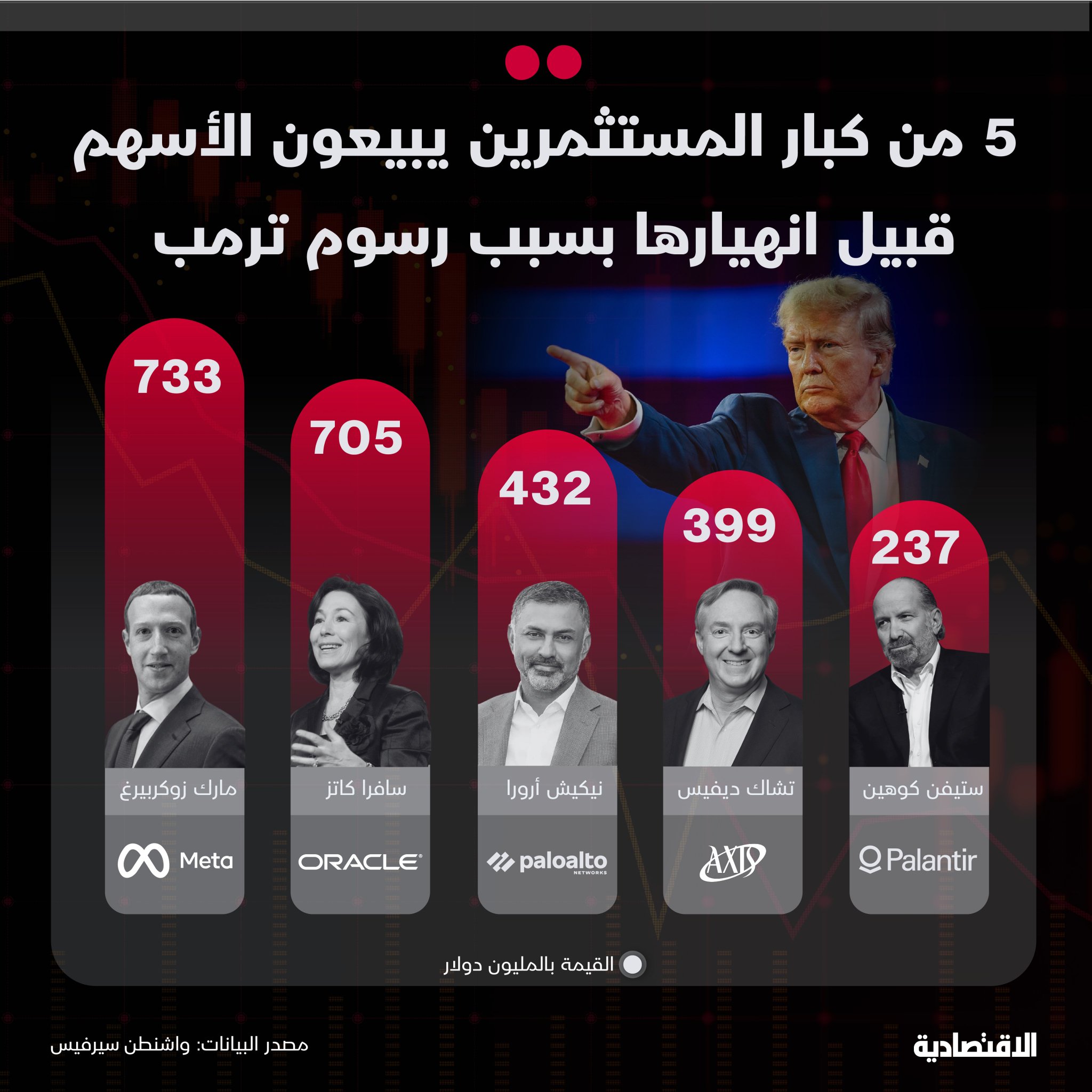 أقدم عدد من المسؤولين من بينهم مارك زوكربيرج من شركة "ميتا بلاتفورمز"، وسافرا كاتز من "أوراكل"، وجيمي دايمون من "جيه بي مورجان" على بيع أسهم بمليارات الدولارات قبيل إعلان الرئيس دونالد ترمب عن الرسوم الجمركية التي أحدثت اضطرابات في الأسواق.