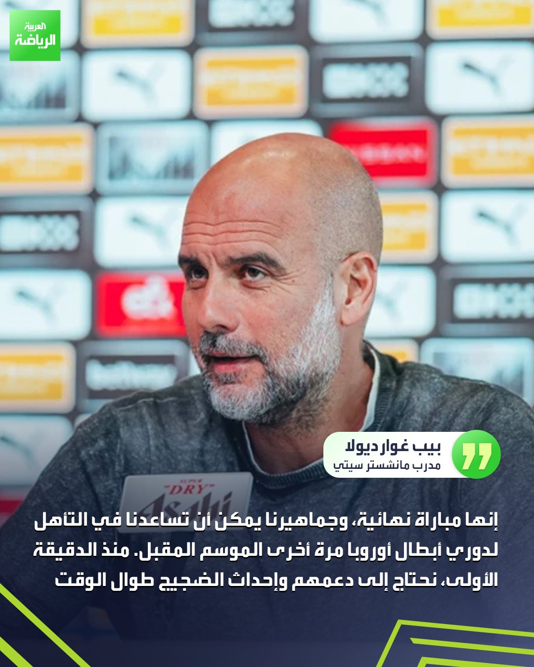 بيب غوارديولا عن مباراة أستون فيلا. إنها مباراة نهائية، وجماهيرنا يمكن أن تساعدنا في التأهل لدوري أبطال أوروبا مرة أخرى الموسم المقبل. _رياضة