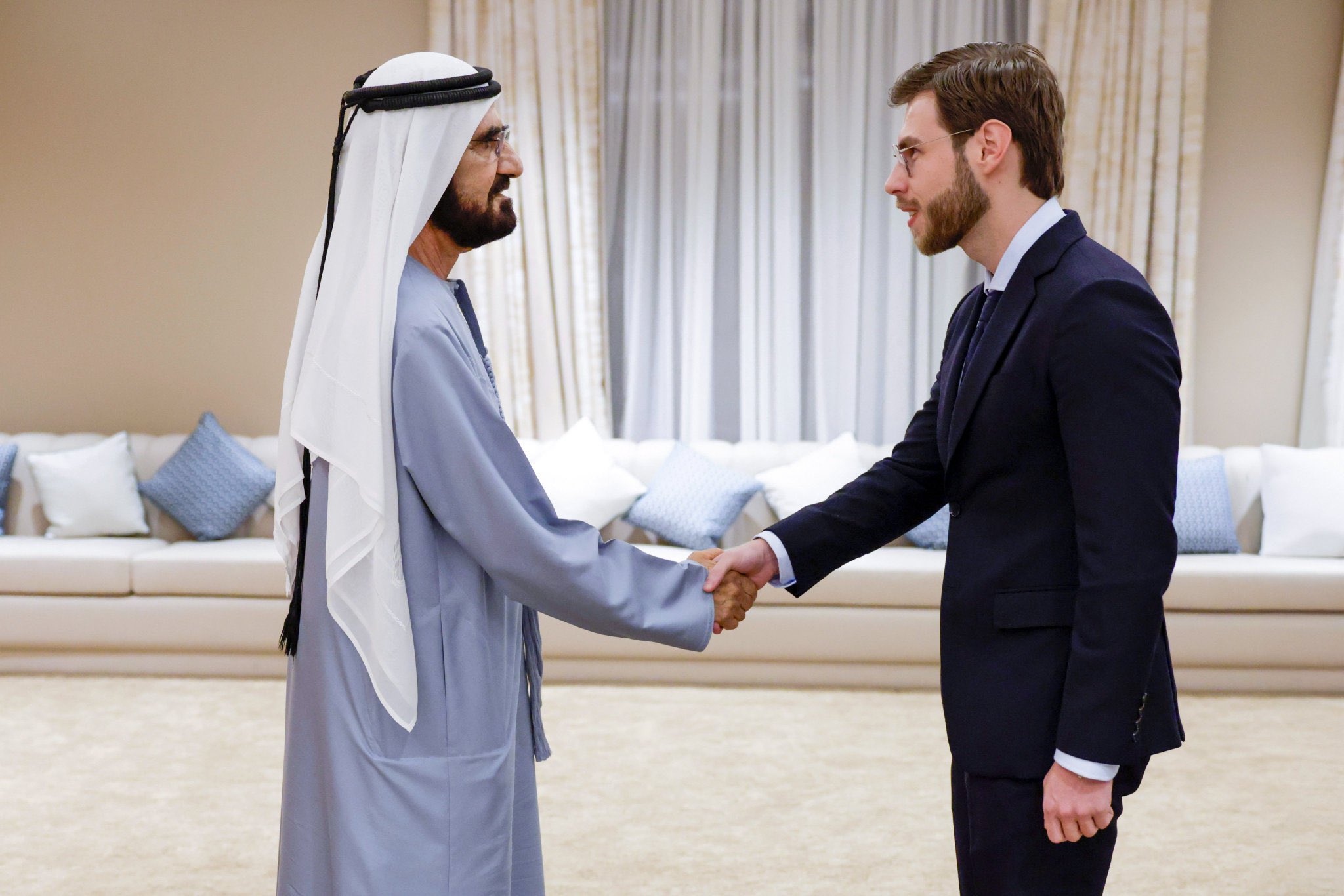 محمد بن راشد يلتقي نخبة من خريجي «برنامج دبي لتدريب رواد الأعمال»، البرنامج العالمي الرائد في مجال تأهيل الخريجين الموهوبين، تزامناً مع احتفال البرنامج بمرور عشرة أعوام على تأسيسه، بسجل حافل من النجاحات والإنجازات في مجال إعداد القادة العالميين للمستقبل. #مصدر_للأخبار