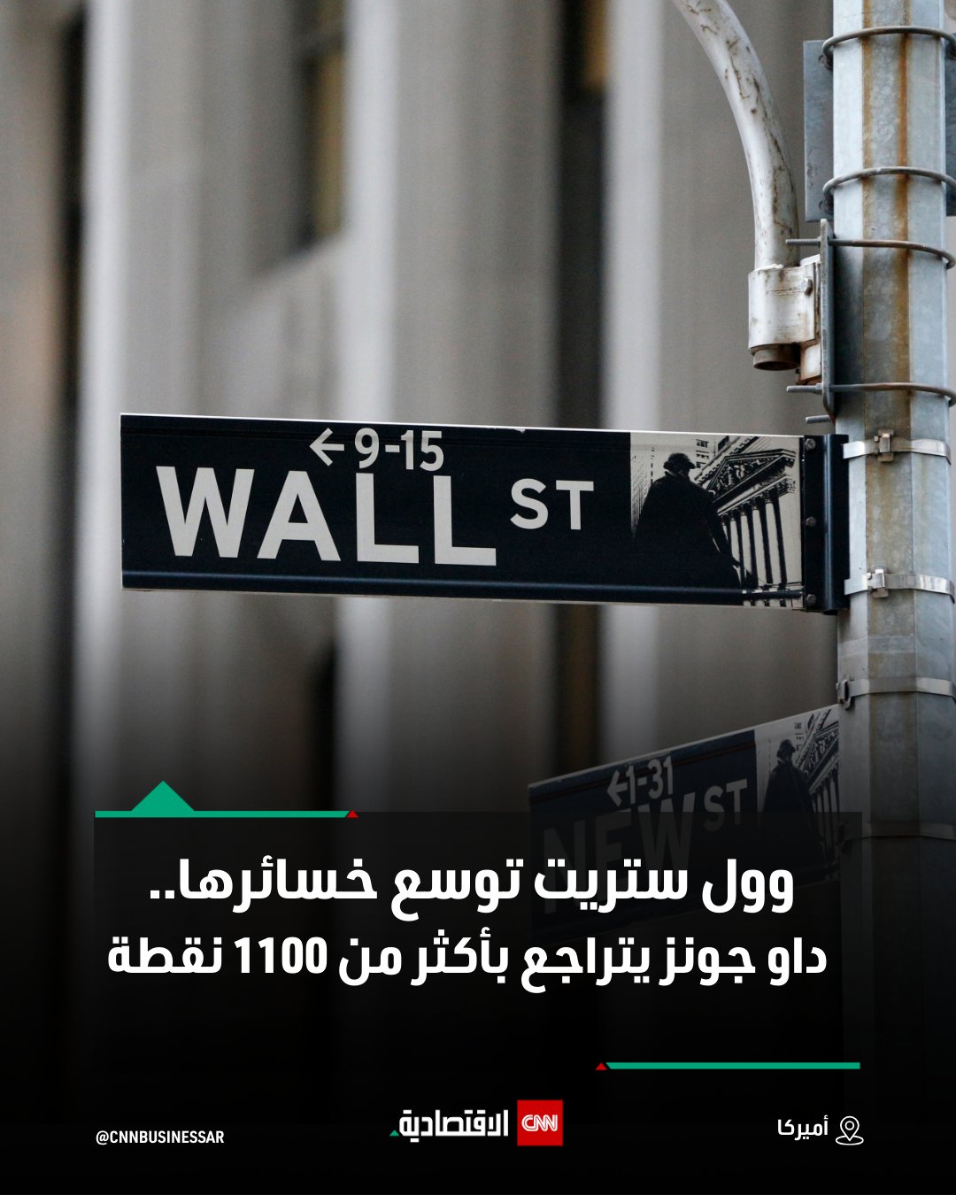 وسعت الأسهم الأميركية خسائرها يوم الاثنين، خلال تداولات بداية الأسبوع، مع تقييم المستثمرين لعدم اليقين المستمر بشأن الرسوم الجمركية وتداعيات محاولات الرئيس دونالد ترامب المستمرة للإطاحة برئيس مجلس الاحتياطي الفيدرالي جيروم باول.. انخفض مؤشر داو جونز بأكثر من 1100 نقطة، أي بنسبة 2.8%. تكبد مؤشر ستاندرد آند بورز 500 خسائر أوسع نطاقاً بنسبة 2.9%. تراجع مؤشر ناسداك المركب، الذي يهيمن عليه قطاع التكنولوجيا، بنسبة 3.2% #العالم_بلغة_الأعمال