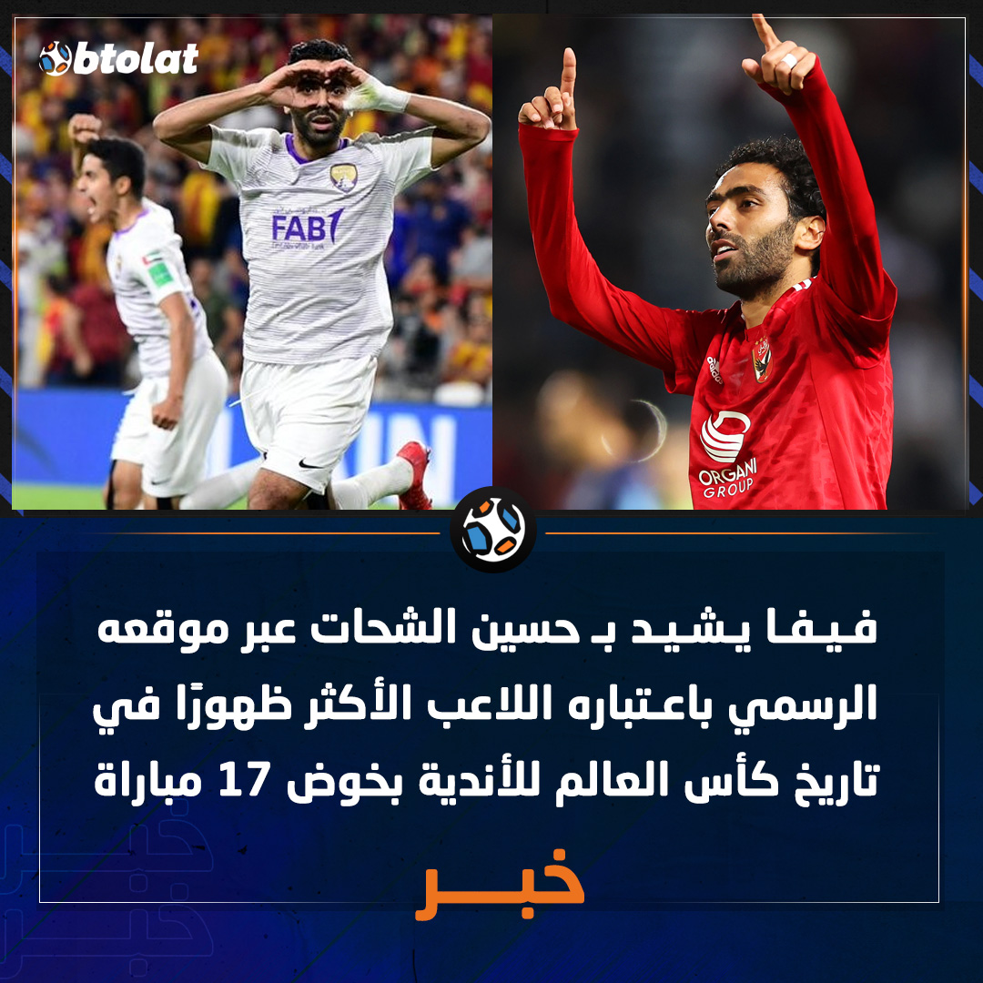 فيفا يشيد ب حسين الشحات عبر موقعه الرسمي باعتباره اللاعب الأكثر ظهورًا في تاريخ كأس العالم للأندية بخوض 17 مباراة. حسين الشحات لعب بقميص العين الإماراتي وساهم في بلوغ الفريق للنهائي عام 2018. نينجا الأهلي حصل على البرونزية 3 مرات مع الفريق