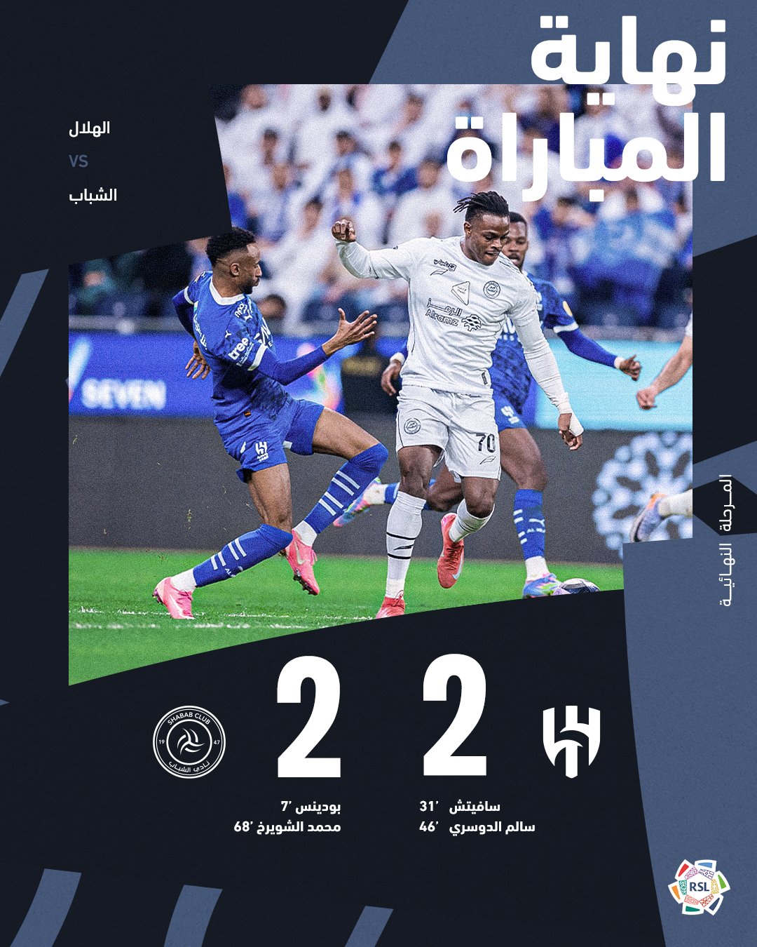 صور .. دوري روشن: الهلال يتعادل مع ضيفه الشباب بنتيجة (2 -2)