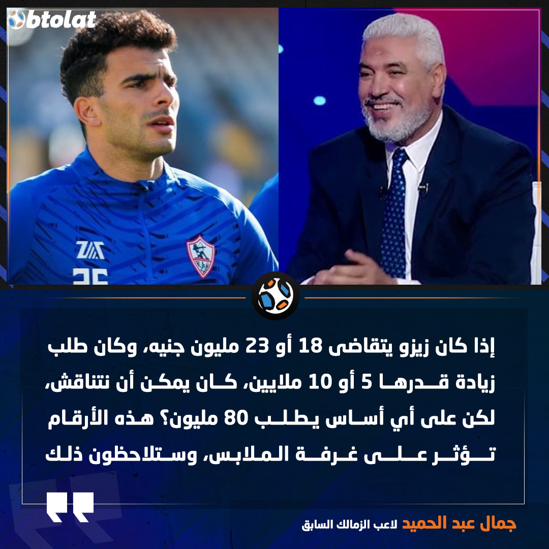 جمال عبد الحميد. إذا كان زيزو يتقاضى 18 أو 23 مليون جنيه، وكان طلب زيادة قدرها 5 أو 10 ملايين، كان يمكن أن نتناقش، لكن على أي أساس يطلب 80 مليون؟ هذه الأرقام تؤثر على غرفة الملابس، وستلاحظون ذلك