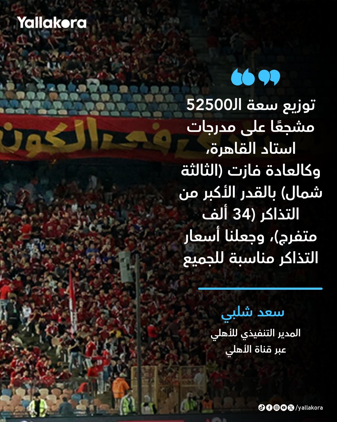 سعد شلبي. توزيع سعة ال52500 مشجعًا على مدرجات استاد القاهرة، وكالعادة فازت (الثالثة شمال) بالقدر الأكبر من التذاكر (34 ألف متفرج)، وجعلنا أسعار التذاكر مناسبة للجميع