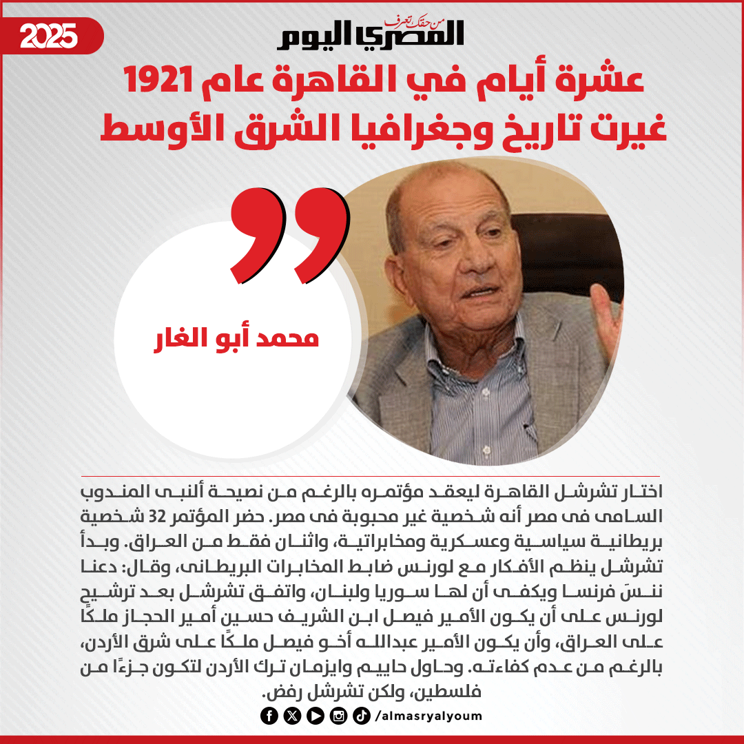 محمد أبو الغار يكتب: عشرة أيام في القاهرة عام 1921 غيرت تاريخ وجغرافيا الشرق الأوسط