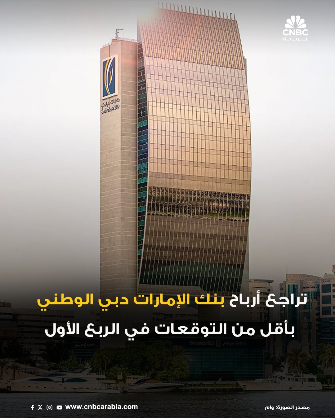 انخفاض أرباح بنك الإمارات دبي الوطني بنسبة 7% إلى 6.2 مليار درهم بالربع الأول 2025، ولكنها تتجاوز التوقعات البالغة 5.1 مليار درهم
