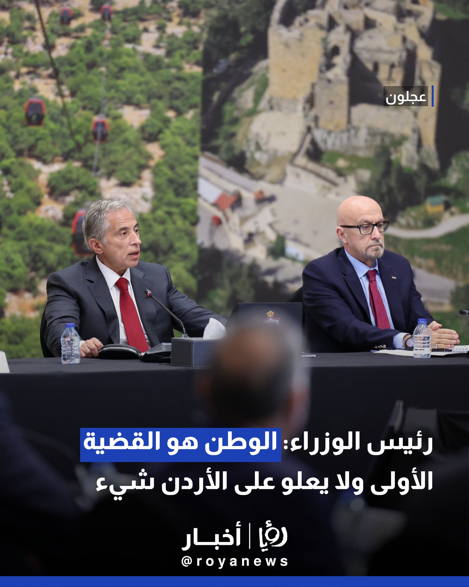 أكد رئيس الوزراء الدكتور جعفر حسان، خلال جلسة مجلس الوزراء التي عقدت في محافظة عجلون، أن "الأردن دولة لا يُختبر صبرها، ولا يُستقوى عليها بالاستعراضات أو الشعارات الشعبوية"، مشددًا على أن "لا أحد يملك الحق بالمجازفة بسلامة شعبها لأي قضية كانت، فالوطن هو القضية الأولى ولا يعلو على الأردن شيء".