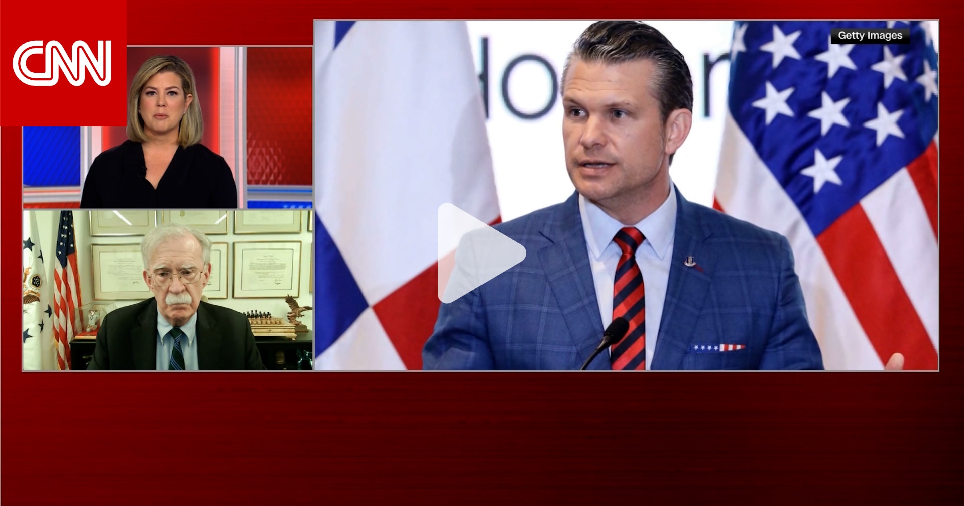 هاجم وزير الدفاع الأمريكي، بيت هيغسيث، المسربين وانتقد وسائل الإعلام وسط تقارير تفيد بأنه استخدم مجموعة دردشة ثانية على تطبيق "سيجنال" لمناقشة خطط عسكرية سرية.ودافع الرئيس الأمريكي، دونالد ترامب، علناً عن هيغسيث بينما نفى البيت الأبيض التقارير التي تفيد بأنه يتطلع إلى استبدال وزير الدفاع. ينضم جون بولتون، الذي شغل منصب مستشار الأمن القومي خلال فترة ولاية الرئيس ترامب الأولى، إلى CNN لمناقشة التطورات.