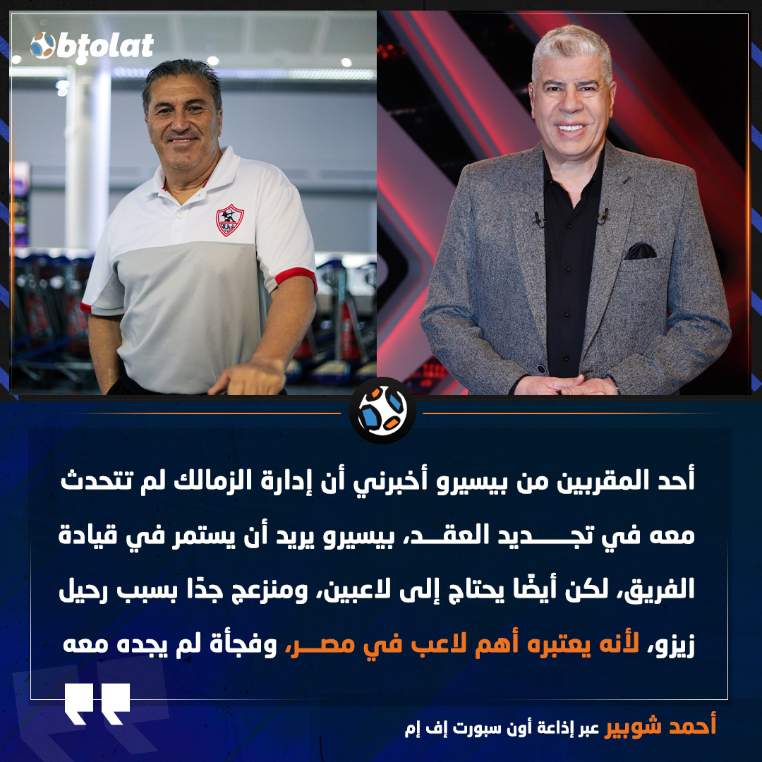 أحمد شوبير: بيسيرو منزعج جدًا بسبب رحيل زيزو، لأنه يعتبره أهم لاعب في مصر، وفجأة لم يجده معه