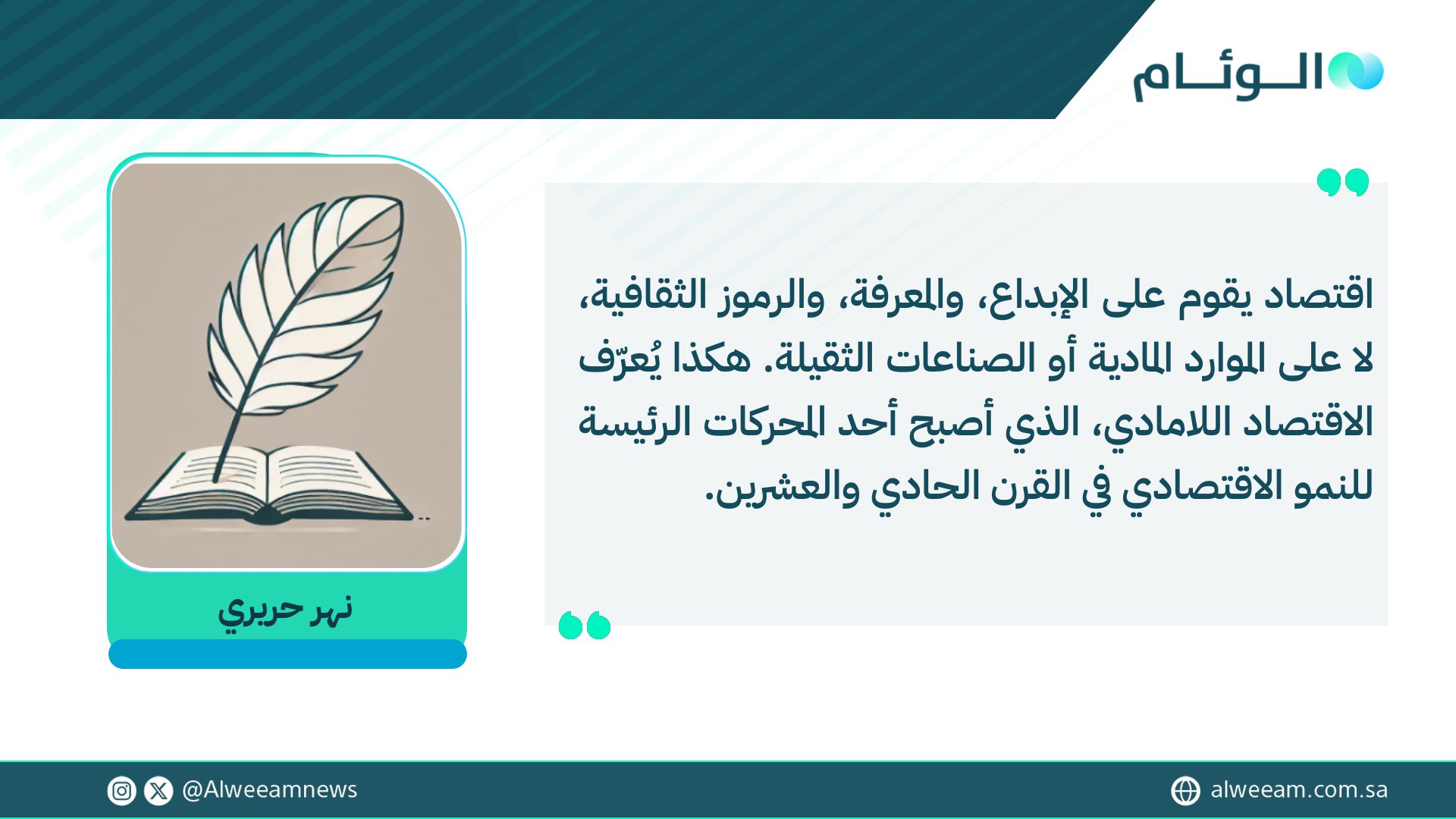اقتصاد يقوم على الإبداع، والمعرفة، والرموز الثقافية، لا على الموارد المادية أو الصناعات الثقيلة. هكذا يُعرّف الاقتصاد اللامادي، الذي أصبح أحد المحركات الرئيسة للنمو الاقتصادي في القرن الحادي والعشرين.