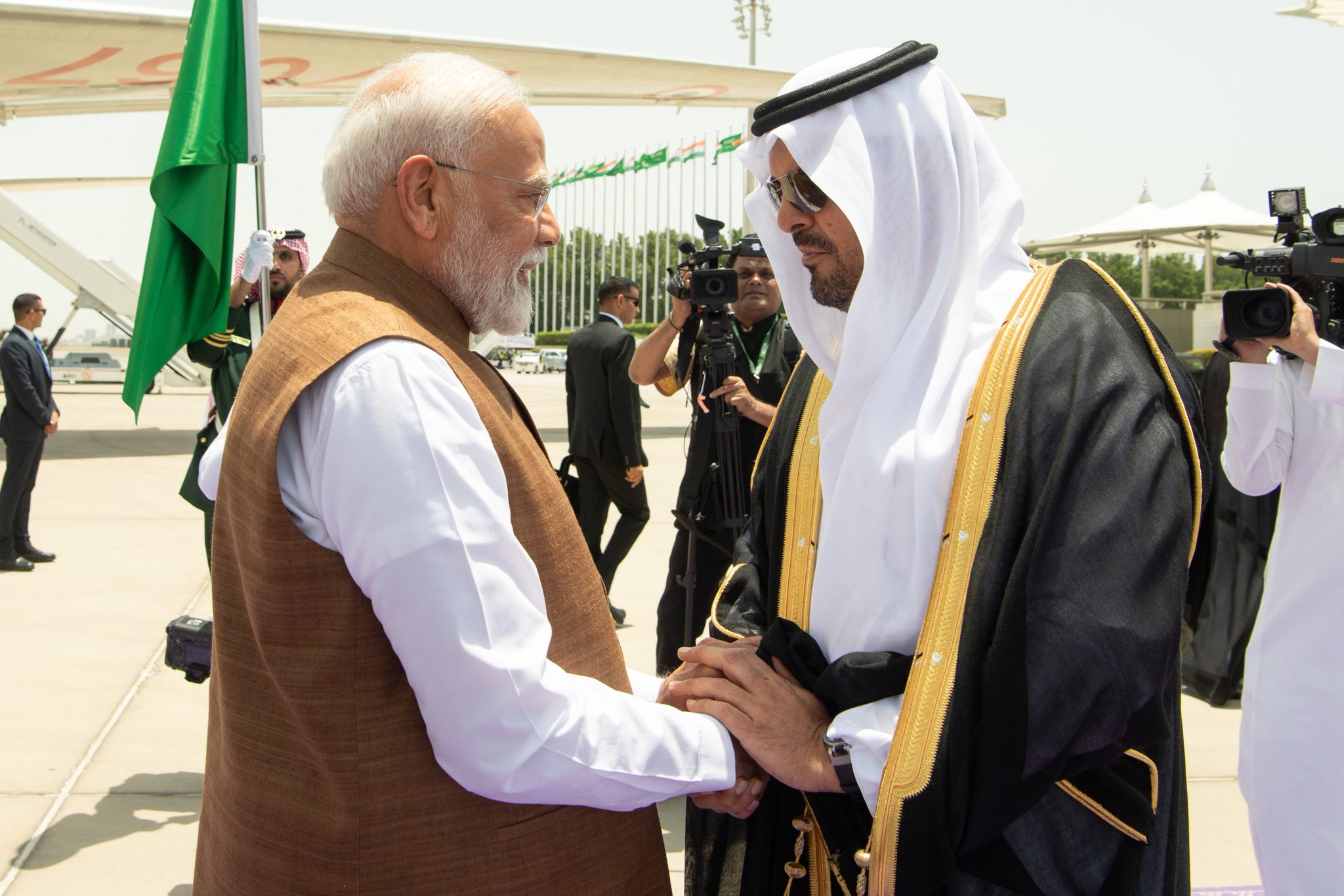وصل إلى جدة اليوم الثلاثاء، دولة رئيس وزراء جمهورية الهند السيد ناريندرا مودي، والوفد المرافق له، في زيارة دولة للسعودية.