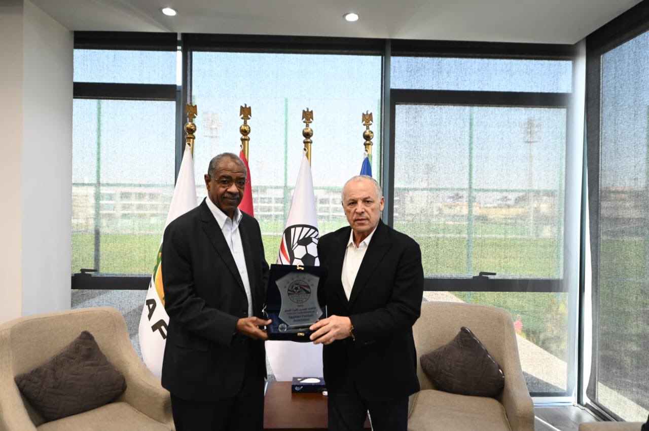 هاني أبو ريدة يلتقي مع نظيره السوداني معتصم جعفر بمقر اتحاد الكرة الجديد لبحث العلاقات بين الاتحادين وسبل تطويرها خلال الفترة القادمة