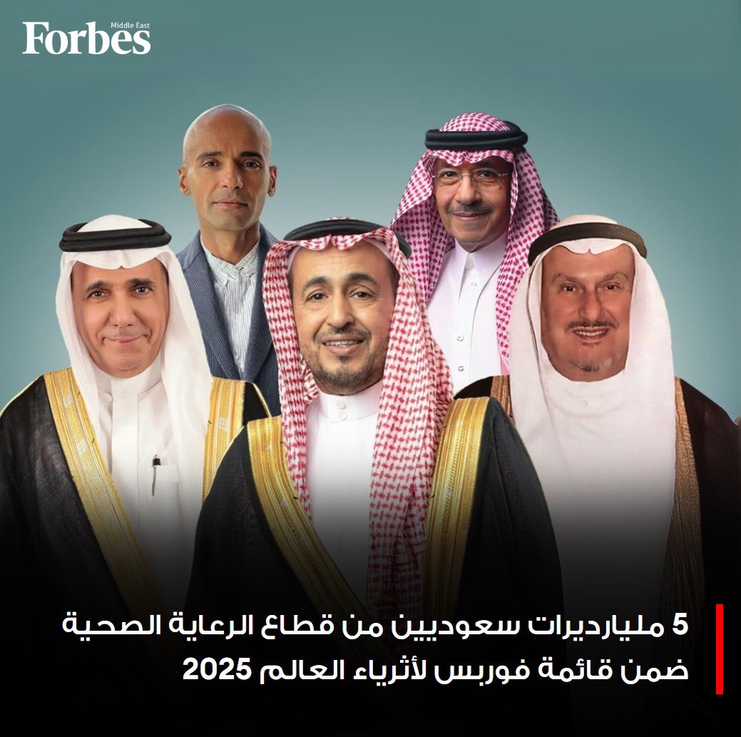 وفقًا لقائمة فوربس السنوية التاسعة والثلاثين لأثرياء العالم لعام 2025 انضم خمس مليارديرات سعوديين في مجال الرعاية الصحية إلى نادي النخبة العالمي، مما يعكس النمو السريع للقطاع ودوره المحوري في مستقبل المملكة.