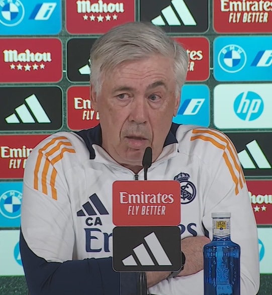 نهاية المؤتمر الصحفي، ملخص لأبرز تصريحات كارلو أنشيلوتي قبل مواجهة ريال مدريد مع خيتافي غدًا: "نحن مستعدون تمامًا لمباراة برشلونة في نهائي كأس الملك. من الواضح أن المباراة ستكون صعبة جدًا، ولكننا على أتم الاستعداد لمواجهة التحديات. النهائيات دائمًا تحمل مفاجآت، لكننا جاهزون للقتال حتى النهاية من أجل اللقب.". "نحن نعلم أن برشلونة فريق قوي جدًا، ولكن في النهائيات كل شيء ممكن. نحن نحترمهم، لكننا نعلم أننا نستطيع الفوز.". "بالنسبة ل مبابي و ميندي، فهما لن يكونا جاهزين للمشاركة في المباراة القادمة، لكنهما يعملان بجد للعودة في أقرب وقت. نأمل أن يكونا مستعدين للنهائي.". "هذا الموسم كان مليئًا بالتحديات، خصوصًا بسبب الإصابات، لكننا على الرغم من ذلك نواصل القتال. اللاعبين أظهروا احترافية كبيرة في التعامل مع الضغوط.". "لا أشعر بأي ضغط مفرط. أنا سعيد