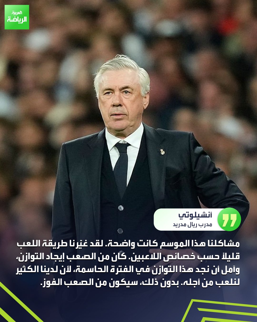 أنشيلوتي: مشاكلنا هذا الموسم كانت واضحة. لقد غيّرنا طريقة اللعب قليلاً حسب خصائص اللاعبين. _رياضة