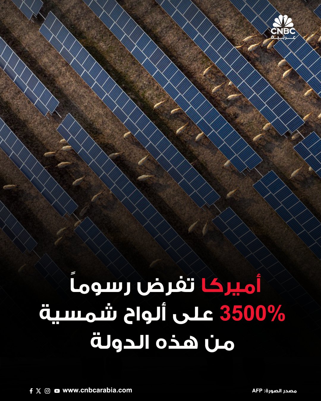 مسؤولو التجارة الأميركيون يستعدون لفرض رسوماً جمركية تصل ل3500% على واردات ألواح شمسية من 4 دول في آسيا. وزارة التجارة الأميركية تقول إن التعرفات الجمركية تستهدف شركات في تايلاند وماليزيا وفيتنام وكمبوديا. الرسوم المقترحة تأتي بعد عامين من فتح تحقيق، وذلك عندما اتهم المصنعون الأميركيون للألواح الشمسية الشركات الصينية بإغراق السوق بسلع رخيصة. كمبوديا تشهد أعلى نسبة من الرسوم بواقع 3521% لعدم تعاون شركاتها مع التحقيقات. فيما تشهد المنتجات المصنعة في ماليزيا من قبل الصينية Jinko Solar رسوماً 41%، أما منتجات Trina Solar في تايلاند فتشهد رسوماً 375%