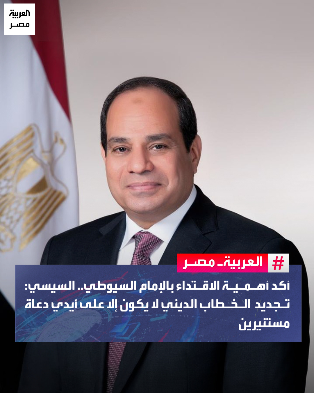 أكد أهمية الاقتداء بالإمام السيوطي.. السيسي: تجديد الخطاب الديني لا يكون إلا على أيدي دعاة مستنيرين _مصر أكد الرئيس عبدالفتاح السيسي، أن تجديد الخطاب الديني لا يكون إلا على أيدي دعاة مستنيرين، أغنياء بالعلم، واسعي الأفق، مدركين للتحديات، أمناء على الدين والوطن، قادرين على تقديم حلولٍ عمليةٍ للناس، تداوي مشكلاتهم وتتصدى لتحدياتهم، بما يُحقق مقاصد الدين ويحفظ ثوابته العريقة.. جاء ذلك خلال مشاركة الرئيس السيسي، اليوم الثلاثاء، في حفل تخرج الدورة الثانية لتأهيل أئمة وزارة الأوقاف في الأكاديمية العسكرية المصرية، وذلك بمركز المنارة للمؤتمرات الدولية.. كما وجه الرئيس السيسي، عدة رسائل تحمل رؤية الدولة في إعداد إنسان متوازن ومسؤول، قادر على الإسهام الإيجابي في المجتمع، مشيرًا إلى أهمية الاقتداء بالإمام السيوطي كنموذج يحتذى به، حيث قدم مساهمة