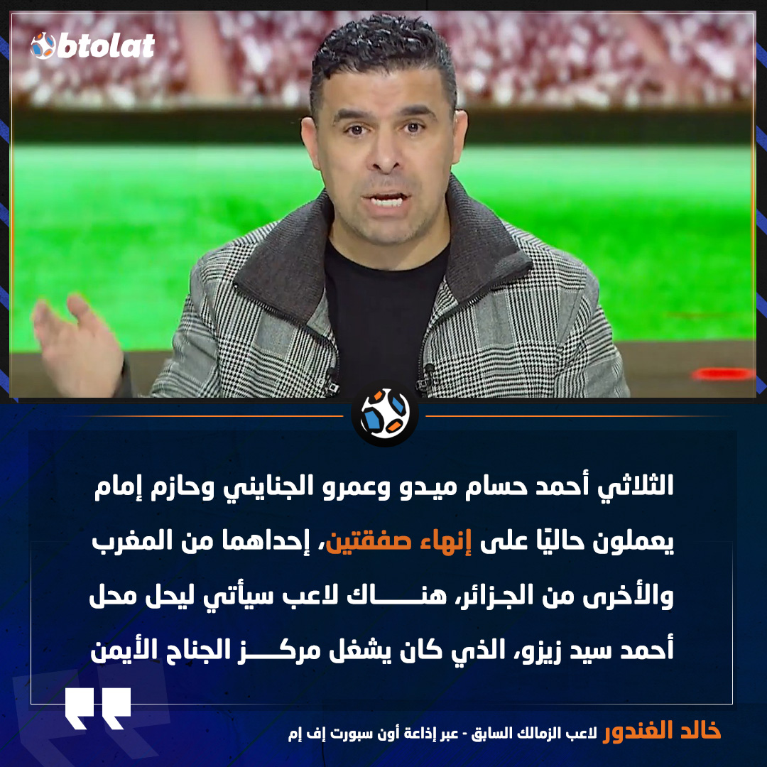 خالد الغندور: الثلاثي ميدو وعمرو الجنايني وحازم إمام يعملون حاليًا على إنهاء صفقتين، إحداهما من المغرب والأخرى من الجزائر