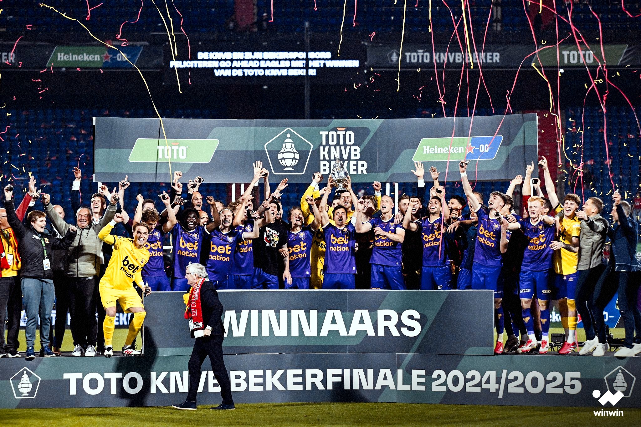 فريق غو أهد إيغلز يدخل التاريخ. لأول مرة في تاريخه، يُتوج الفريق الهولندي بكأس هولندا لكرة القدم، أول لقب كبير يحققه منذ 92 عامًا. مباراة درامية للحظات الأخيرة: هدف التعادل في الدقيقة 99 يُمدد المباراة إلى الوقت الإضافي، قبل أن يفوز بركلات الترجيح #ملعب_لكل_الرياضات