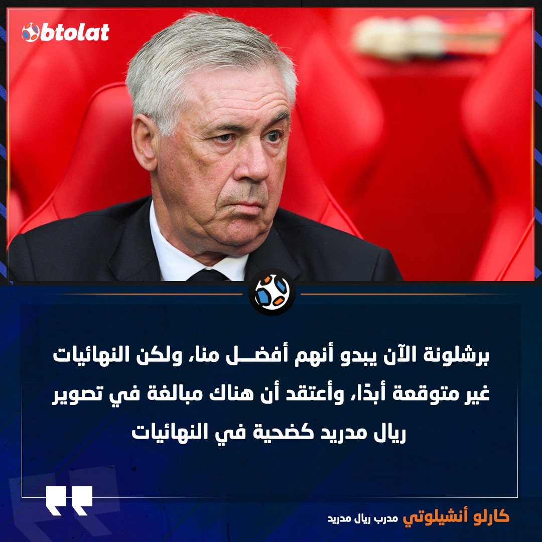 أنشيلوتي: برشلونة الآن يبدو أنهم أفضل منا، ولكن النهائيات غير متوقعة أبدًا