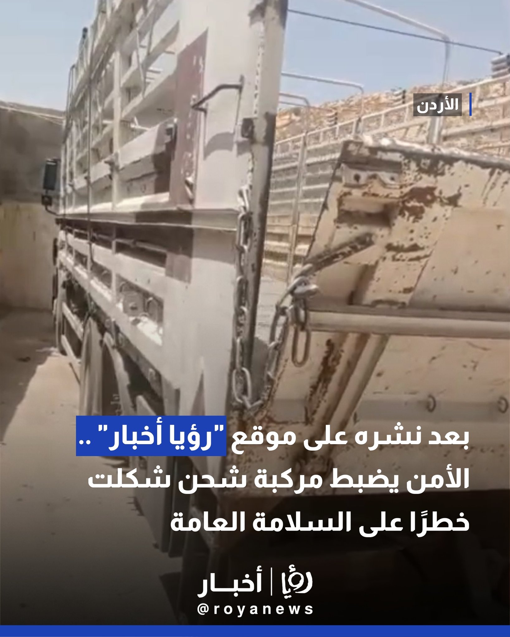 ضبطت إدارة السير المركزية، مركبة شحن تسير بشكل مخالف على طريق شفا بدران نزول بيرين في العاصمة عمان وذلك عقب نشر مقطع فيديو على موقع "رؤيا أخبار" يظهر المركبة محمّلة بمئات أسطوانات الغاز، مع وجود عطل واضح فيها يشكّل خطرًا على مستخدمي الطريق.