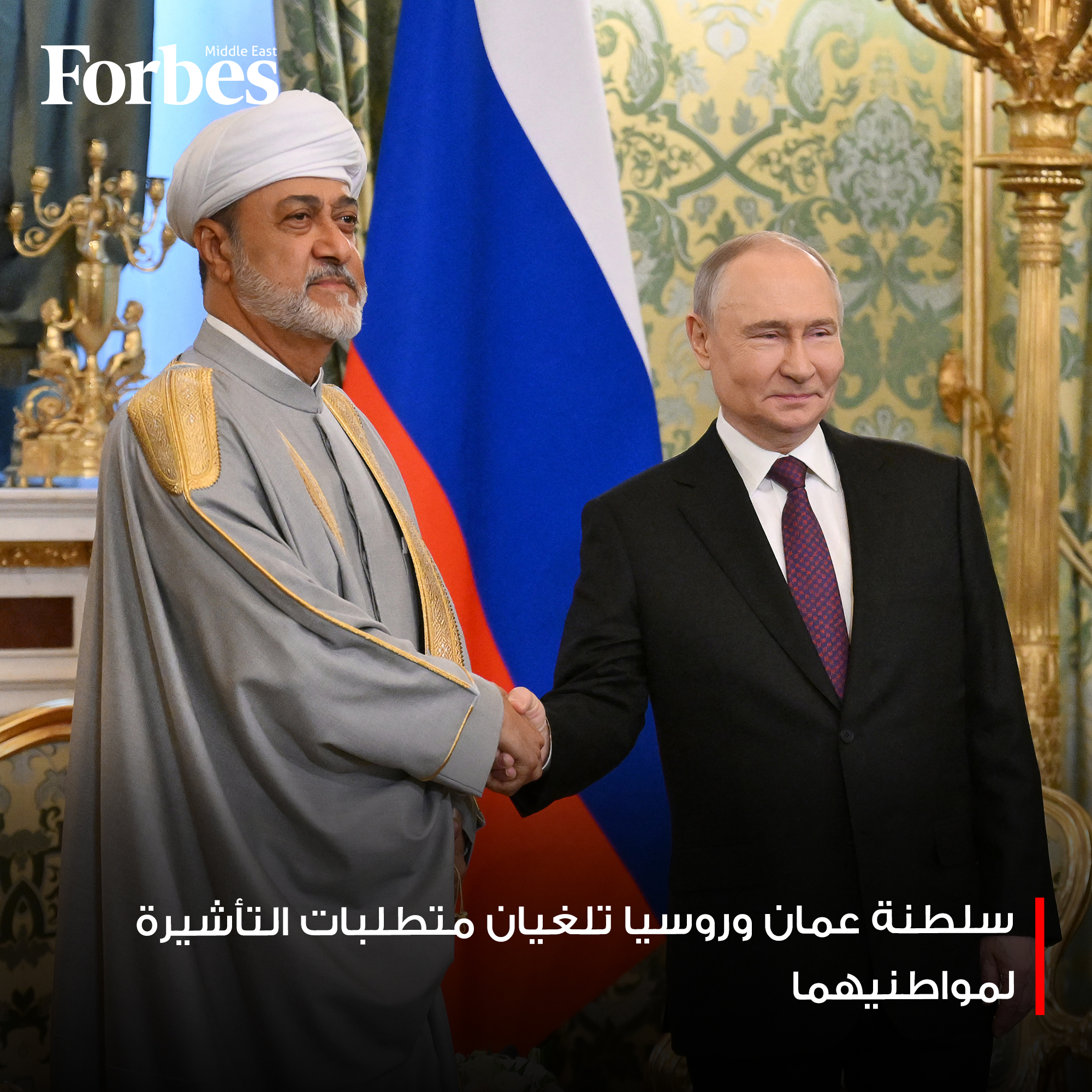 ألغت سلطنة عمان وروسيا متطلبات التأشيرة لمواطني البلدين، وفق اتفاق وقعه السلطان هيثم بن طارق، والرئيس الروسي فلاديمير بوتين اليوم.