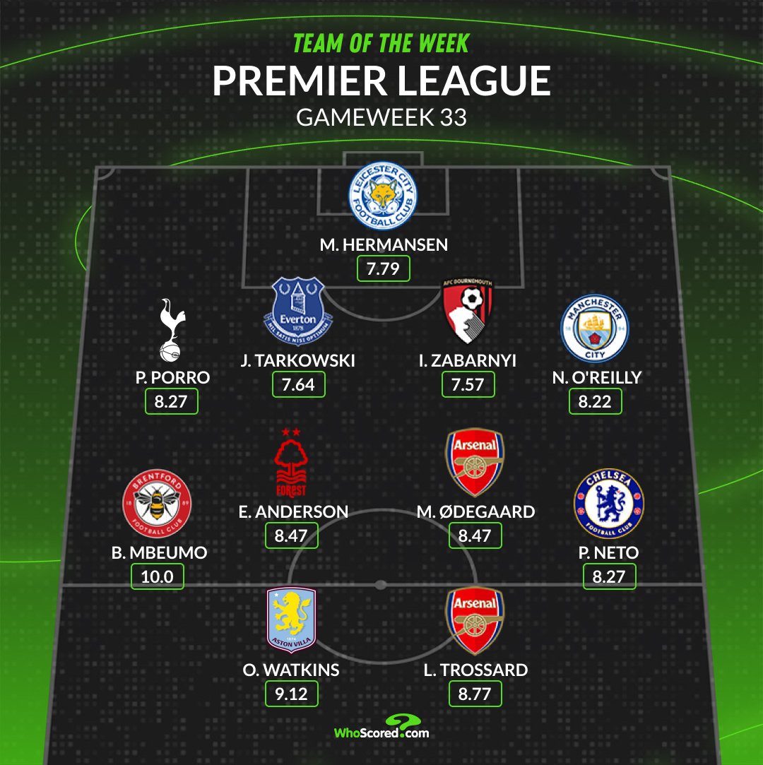 التشكيلة المثالية للأسبوع ال 33 في الدوري الإنجليزي ضمّت أبرز اللاعبين المتألقين بفضل أدائهم القوي ومساهماتهم في نتائج فرقهم وقفا لموقع whoscored