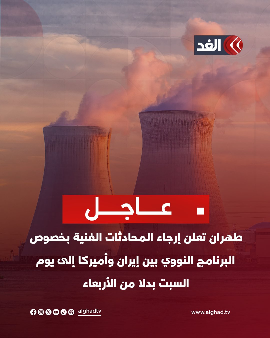 عاجل | طهران تعلن إرجاء المحادثات الفنية بخصوص البرنامج النووي بين إيران و أميركا إلى يوم السبت بدلا من الأربعاء