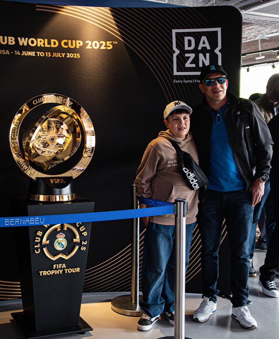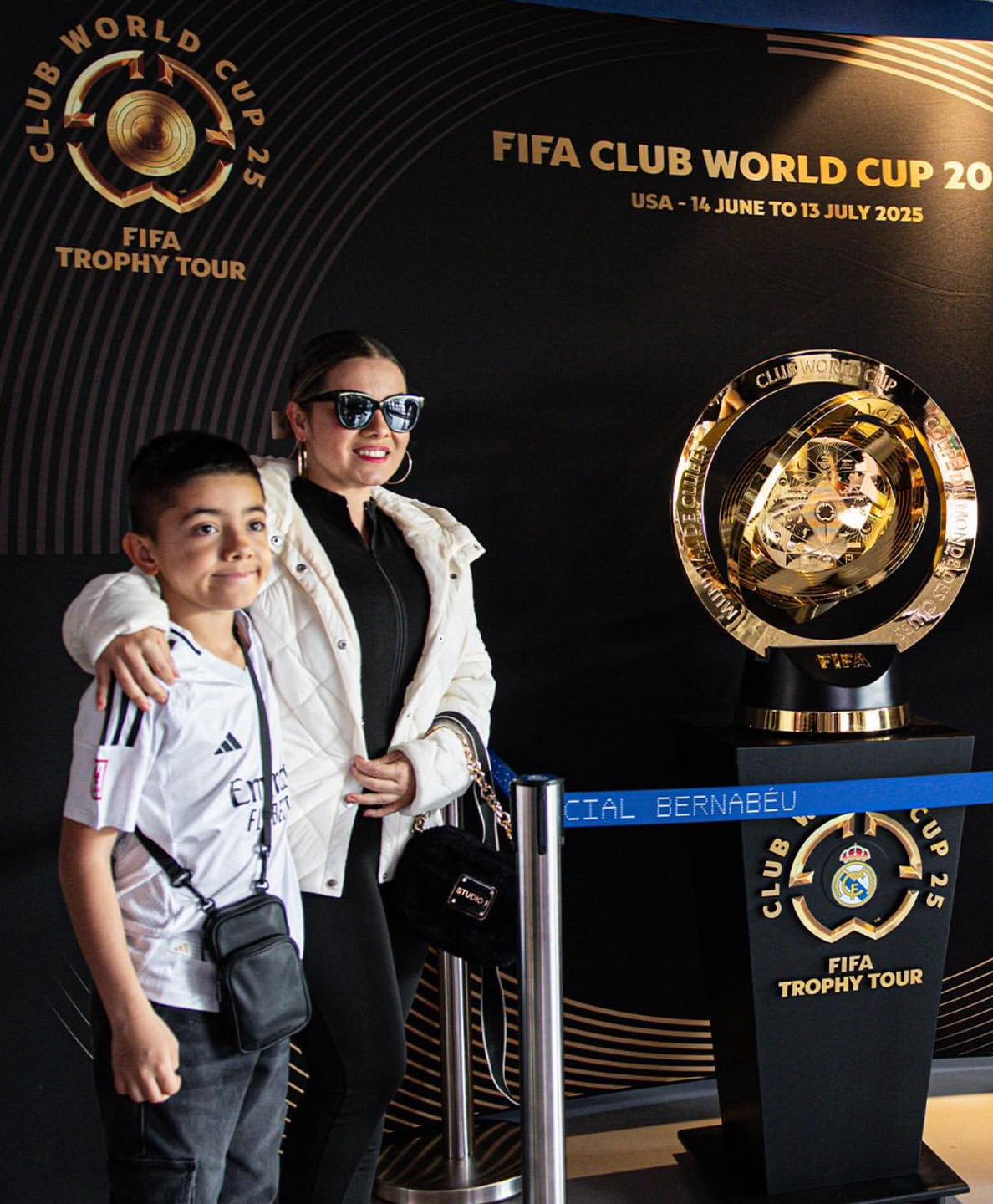 جماهير ريال مدريد تلتقط الصور مع كأس العالم للأندية في سانتياجو برنابيو