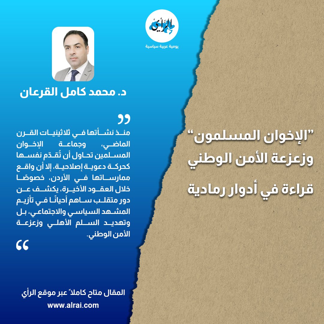 د. محمد كامل القرعان منذ نشأتها في ثلاثينيات القرن الماضي، وجماعة الإخوان المسلمين تحاول أن تُقدّم نفسها كحركة دعوية إصلاحية، إلا أن واقع ممارساتها في الأردن، خصوصًا خلال العقود الأخيرة، يكشف عن دور متقلب ساهم أحيانًا في تأزيم المشهد السياسي والاجتماعي، بل وتهديد السلم الأهلي وزعزعة الأمن الوطني.