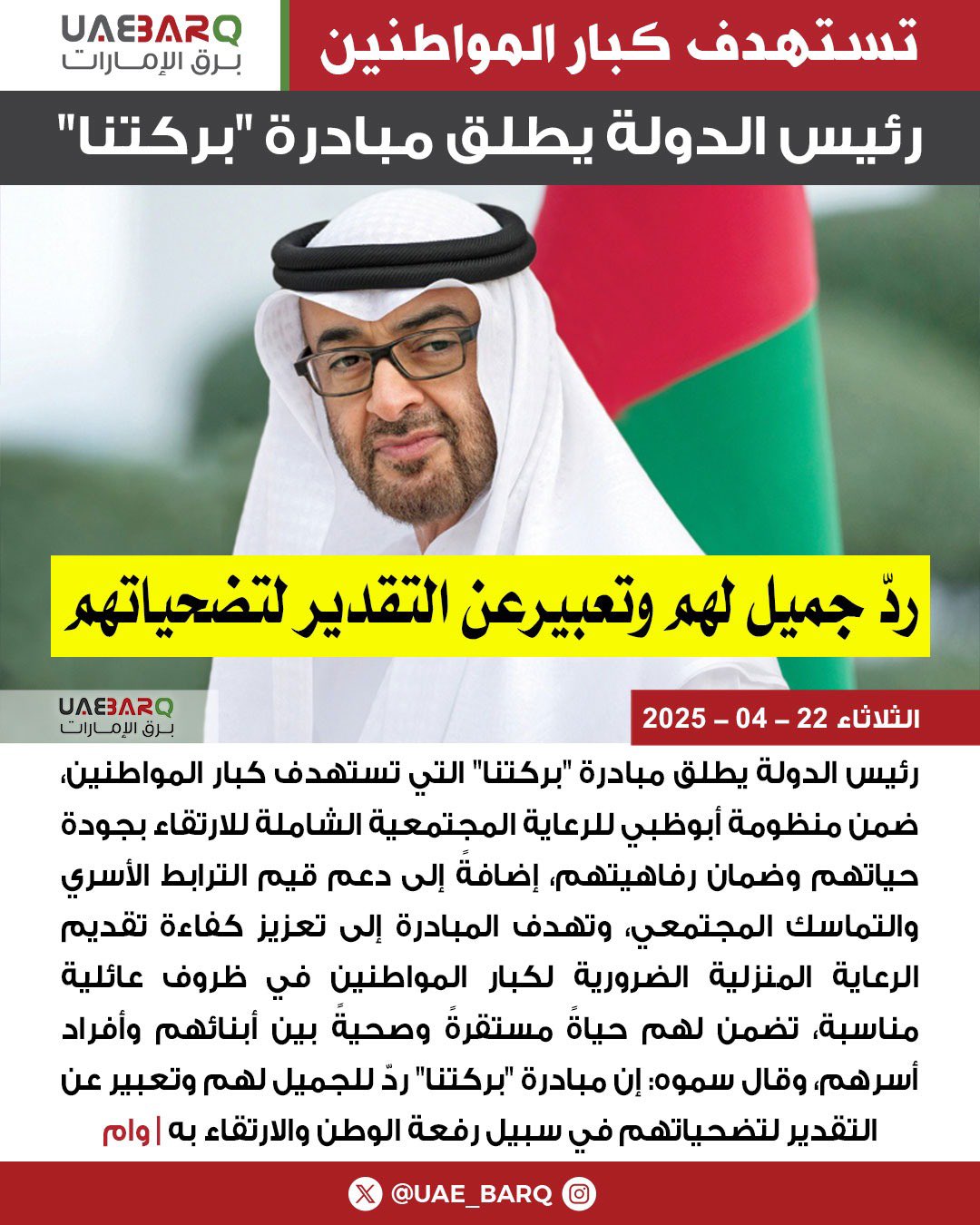 رئيس الدولة يطلق مبادرة "بركتنا" التي تستهدف كبار المواطنين | وام
