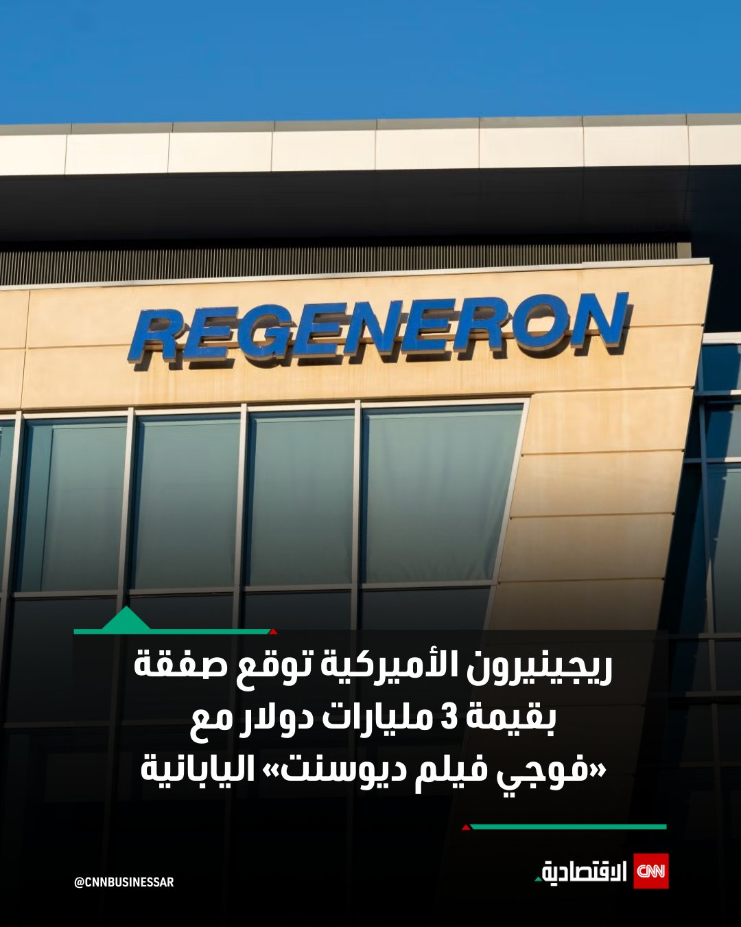أعلنت شركة «ريجينيرون» الأميركية توقيع صفقة استراتيجية بقيمة تفوق 3 مليارات دولار مع «فوجي فيلم ديوسنت» اليابانية لتعزيز طاقتها الإنتاجية في أميركا خلال السنوات العشر المقبلة. | #العالم_بلغة_الأعمال