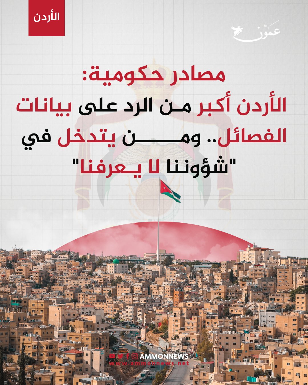 وقال المصدر الحكومي إنّ الأردن أكبر من أن يرد على فصائل، فهو دولة مؤسسات صامدة تاريخيا والفصائل تبخرت.