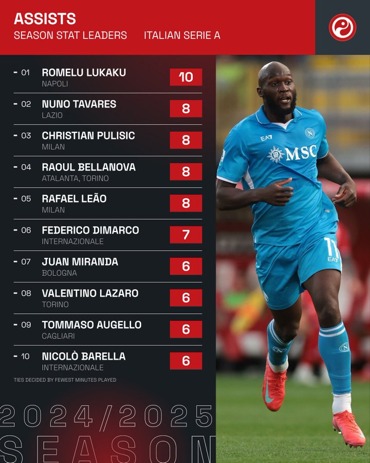 روميلو لوكاكو يتفوق كأول لاعب في الدوري الإيطالي هذا الموسم يصل إلى عشرة تمريرات حاسمة