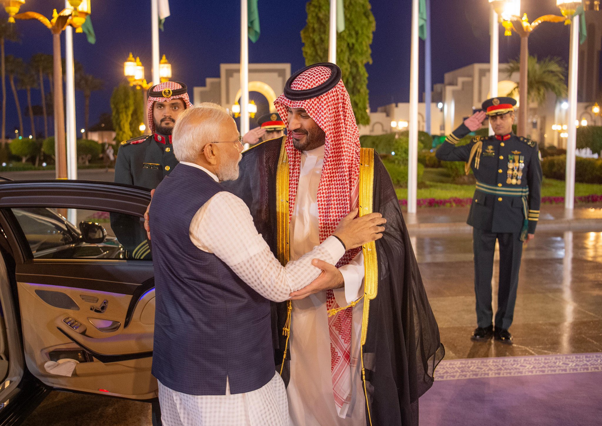 ولي العهد يستقبل في الديوان الملكي بقصر السلام بجدة دولة رئيس وزراء جمهورية الهند، وقد أجريت له مراسم استقبال رسمية. #عاجل